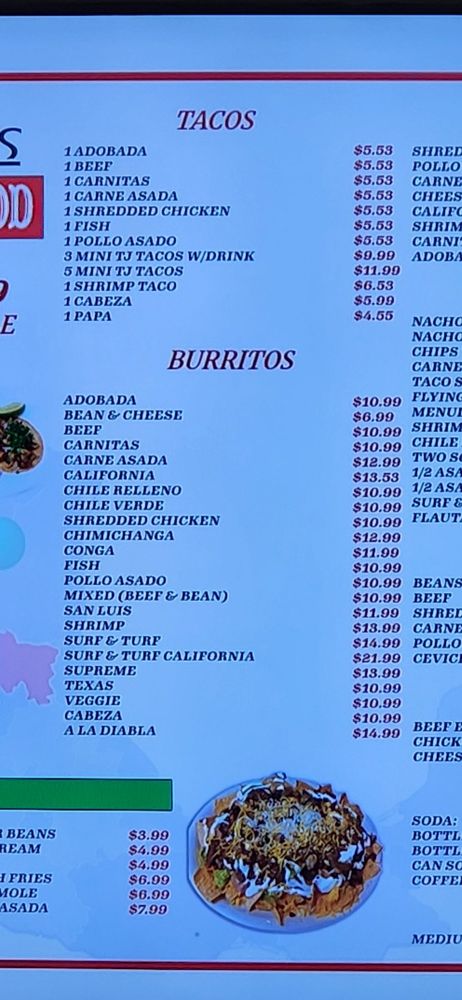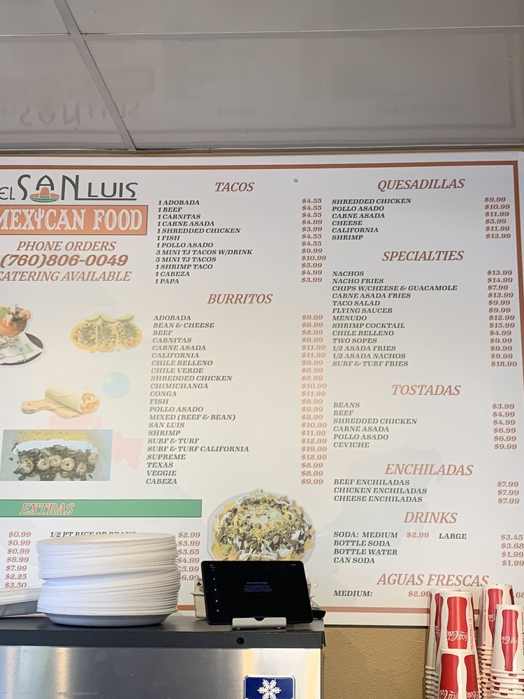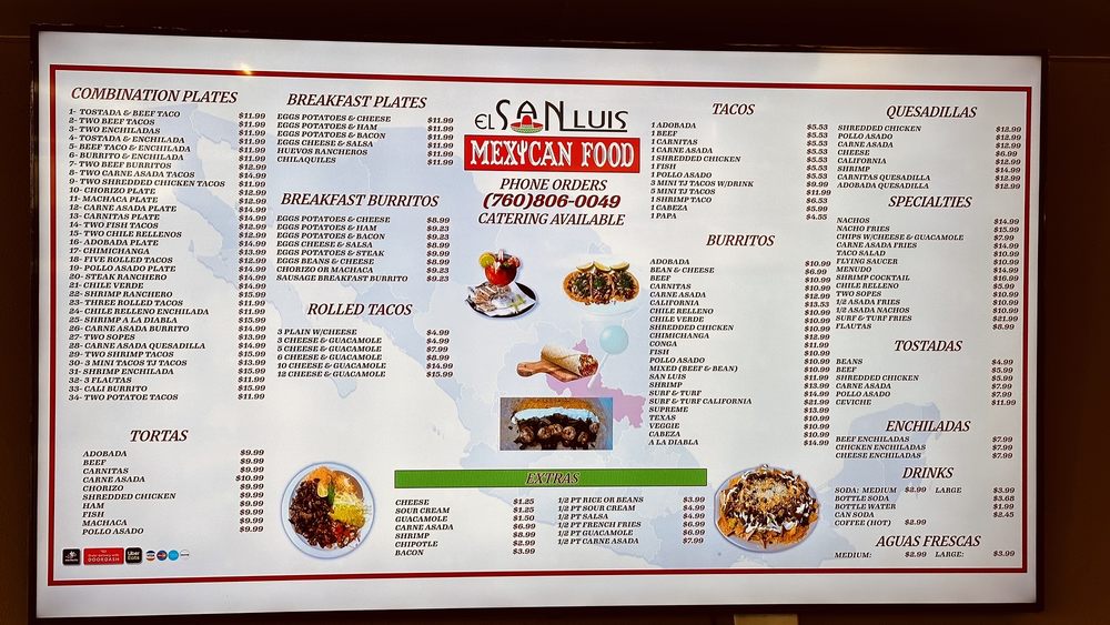 San Luis Mexican Food Menu (Update 2025)
